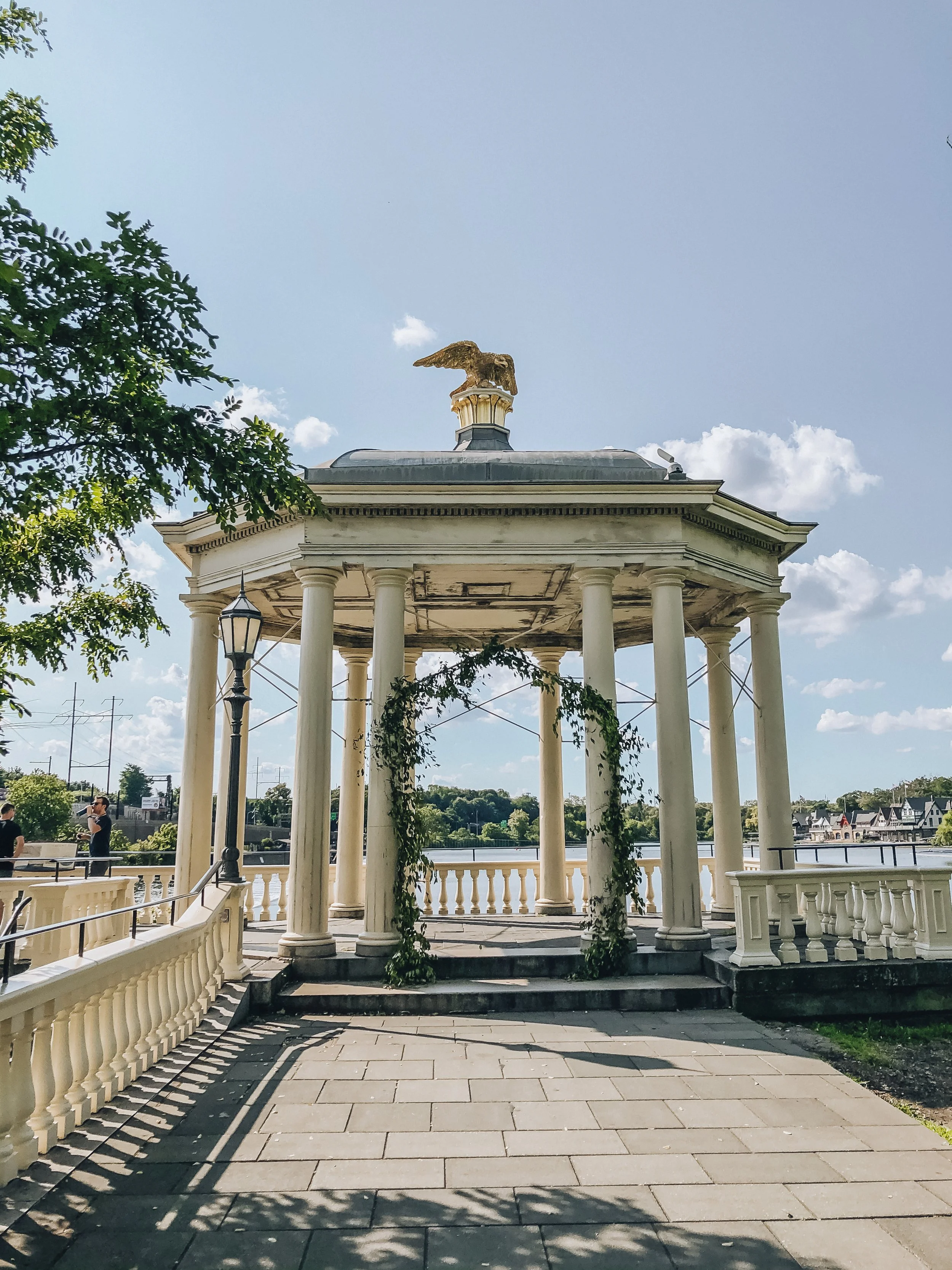 BoatHouse Row - You'll find this location right behind The Philadelphia Museum of Art. if you walk forward you’ll see this beautiful view of house after house overlooking the river. However, Behind me on this photo, there’s a lot of grass space where you can lay down a picnic blanket and chill for a while.