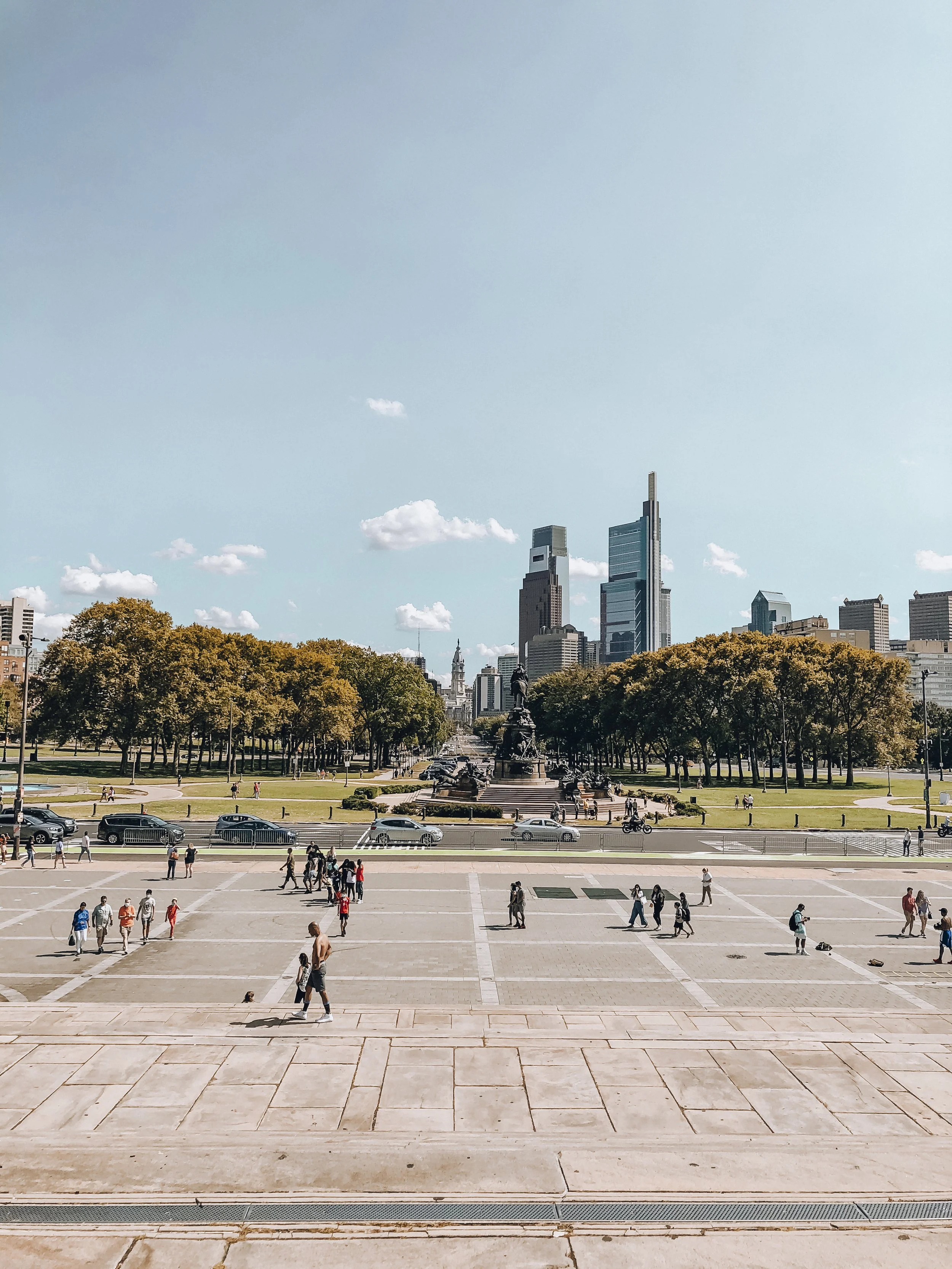 Photo: Marina Moura. Iphone 11. View of City Hall (center) from the rocky steps at Philadelphia Museum of Art.