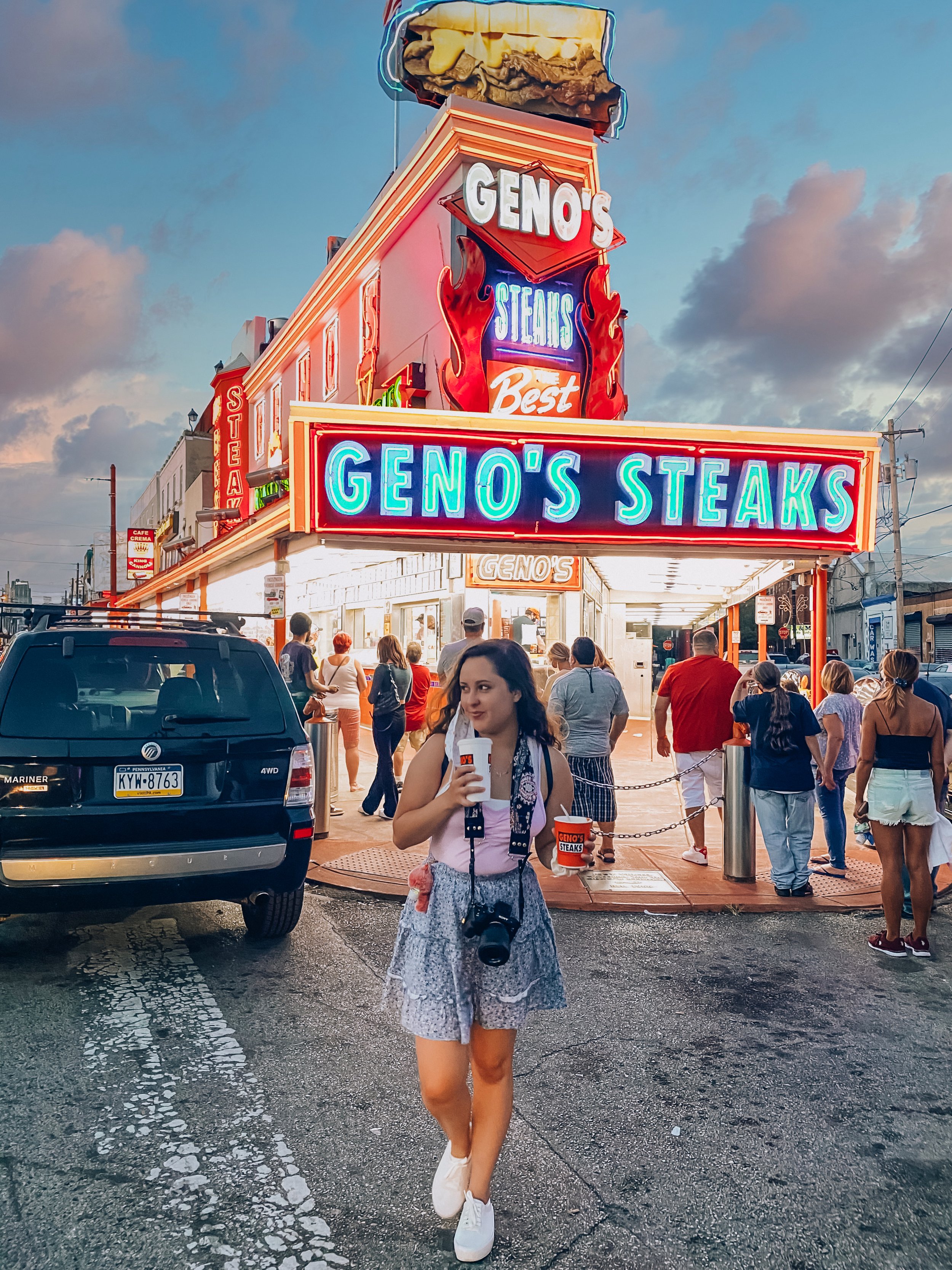 geno’s Steak - Okay, I’m gonna sound so mean right now but it’s not the intention. I just want to be transparent: This was not the best Philly Cheesesteak, and it was not great service either. They got my order wrong and didn’t do anything to fix it. Oh Well, maybe I was just there at a bad day. HOWEVER, just across the street there’s Pat’s King of Steaks, which I’ve heard good reviews about it. Nonetheless, this is still a great location for photos!